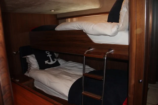 Luxury Sunseeker motor yacht Maroma IV can accommodate up to 8 guests in 4 en-suite cabins. The master stateroom is full beam of the yacht amidships with a queen size center lined bed, sofa, vanity and walk in wardrobe, elongated side windows allow optimum views and plenty of natural light. A VIP cabin is forward and full beam of the yacht with a center lined double bed, vanity and walk in wardrobe. A further 2 twin cabins feature upper and lower single beds. Each cabin is tastefully decorated in a neutral serene décor.